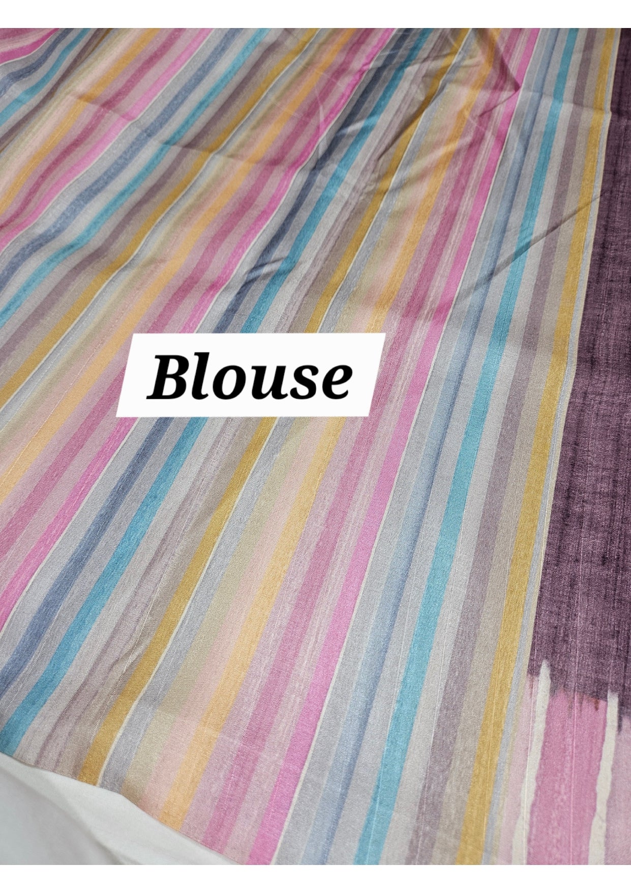 Descriptions (if available): Tussar silk saree with multi color border and pallu with broad lines and blouse with narrow lines